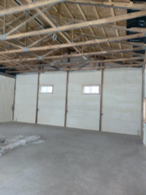 Tory and Kyle performed installation of 2" of R-14 spray foam insulation into the walls of this new pole barn.
