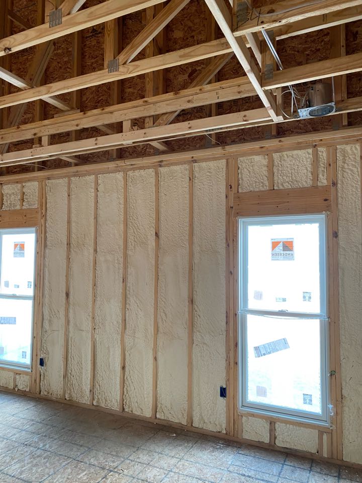 Tory and Kyle installed 2 closedcell foam into exterior walls and bonds of this new construction home